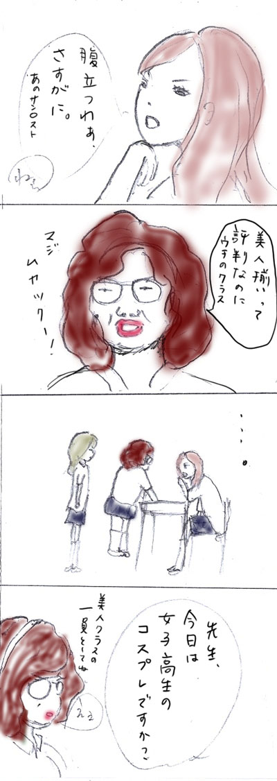 先生の趣味はコスプレと認識していますが、先生にしてみれば、ただのお洒落です。だって、お洒落とは何たるかを教える家庭科教師ですもの。もちろん、カチューシャはお手製。