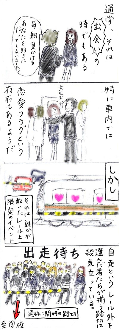 事故の理由や先生、踏み切りは、私自身の高校時代にあった実話です(笑)